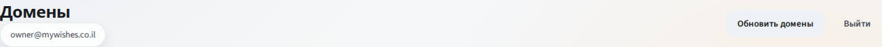 В правом верхнем углу доступны действия верхней панели. Кнопка Обновить домены перечитывает список доменов и их текущее состояние, а ссылка Выйти завершает сеанс и возвращает на страницу входа.